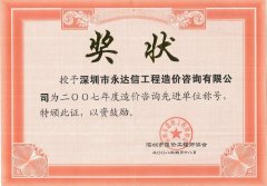 深圳市造价工程师协会2007年度先进单位