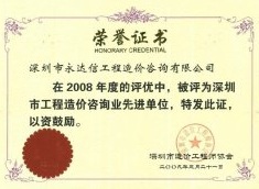 深圳市造价工程师协会2008年度先进单位